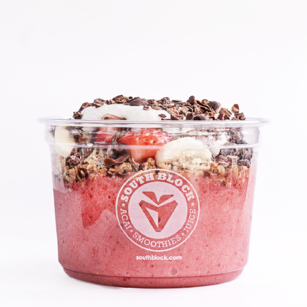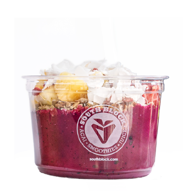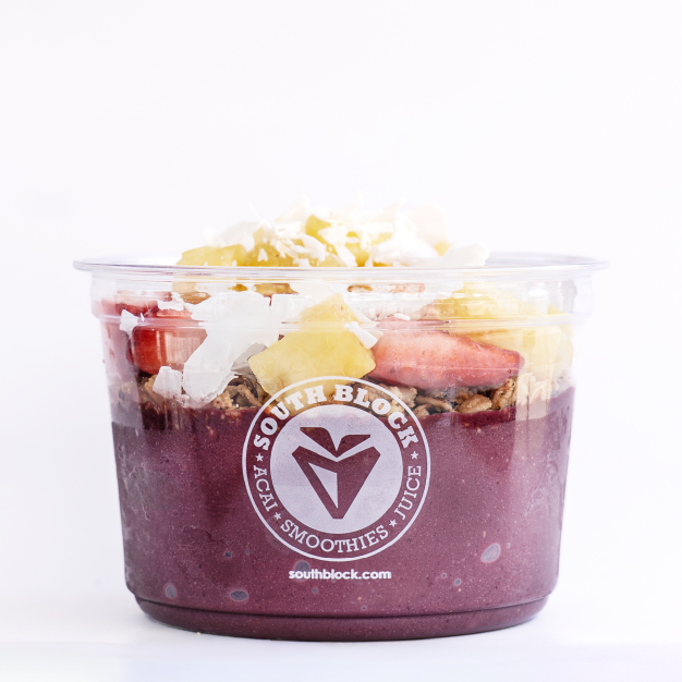 BLEND: organic acai, bananas, strawberries, pineapple juice TOPPED: organic granola, strawberry, pineapple, coconut